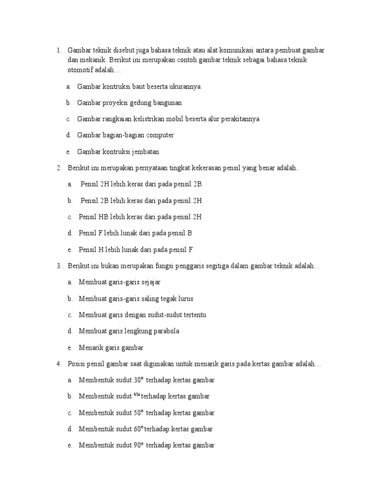20 contoh soal pilihan ganda gambar teknik otomotif.